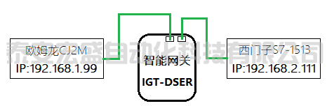 項目中需要西門子S7-1513和歐姆龍的CJ2M之間通訊,為了快速實現(xiàn)完成項目,先采用一個IGT-DSER智能網(wǎng)關模塊來完成PLC之間的通訊任務。相關軟件和手冊下載 多種設備之間通訊 PLC與數(shù)據(jù)庫雙向通訊