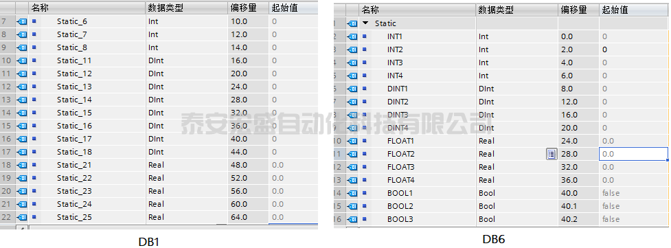 首先在西門子PLC內建立DB數(shù)據(jù)塊DB1和DB6,注意要在DB的屬性里面取消優(yōu)化訪問,同時打開GET/PUT功能,建立好的DB1和DB6如下圖,下載到PLC后重啟即可。