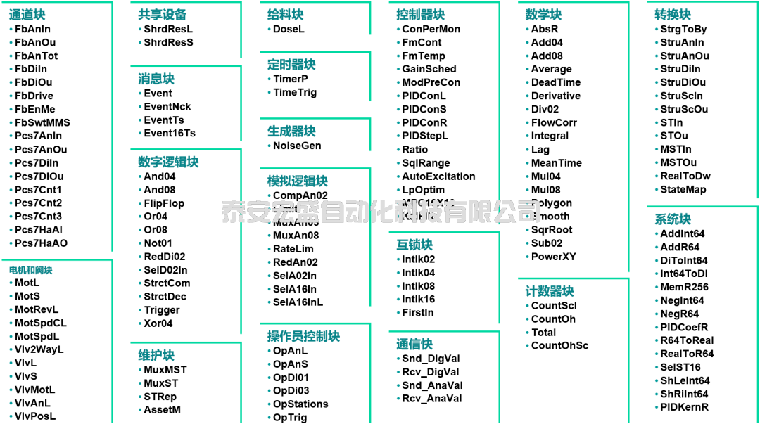 下圖為PCS 7 V9.1 SP1 版本中APL庫(kù)提供的所有功能塊,細(xì)分可以達(dá)19個(gè)小類別。