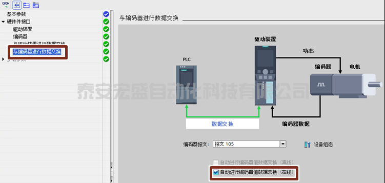 "與編碼器進(jìn)行連接"中,編碼器信可以不填寫,通過勾選"自動(dòng)進(jìn)行編碼器數(shù)據(jù)交換(在線)"自動(dòng)獲取相關(guān)參數(shù):