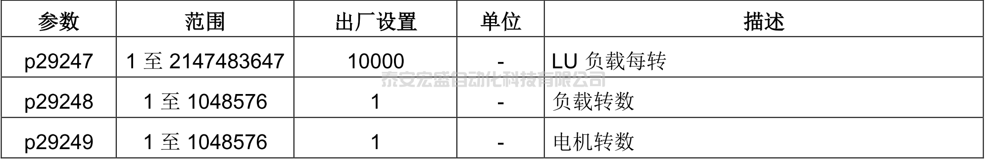 P29247為負(fù)載每轉(zhuǎn)的LU值,其可以自己定義。目的是讓負(fù)載每轉(zhuǎn)的位移單位與EPOS中的LU建立關(guān)系,例如:負(fù)載每轉(zhuǎn)10mm,P29247設(shè)置為10000LU,也就是10mm=10000LU,那么設(shè)定1LU,負(fù)載會(huì)位移0.001mm(=1um)