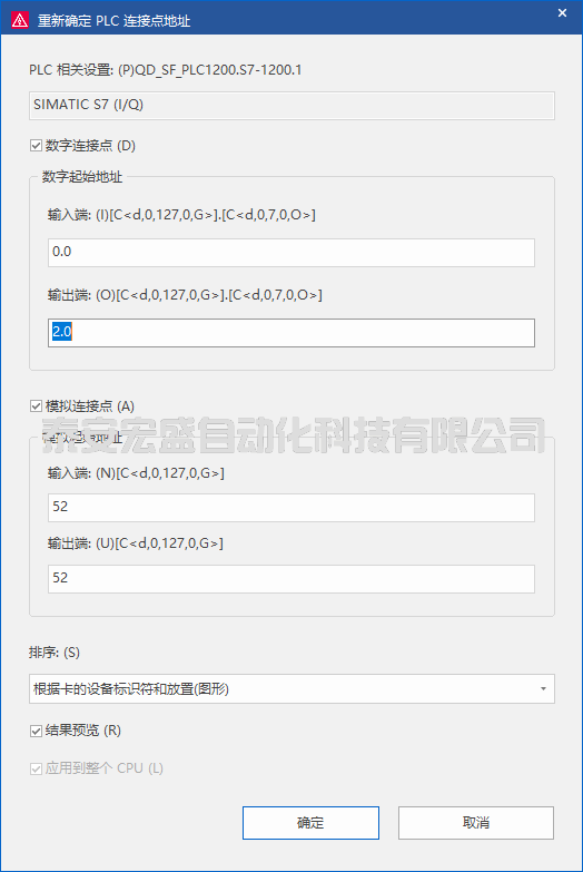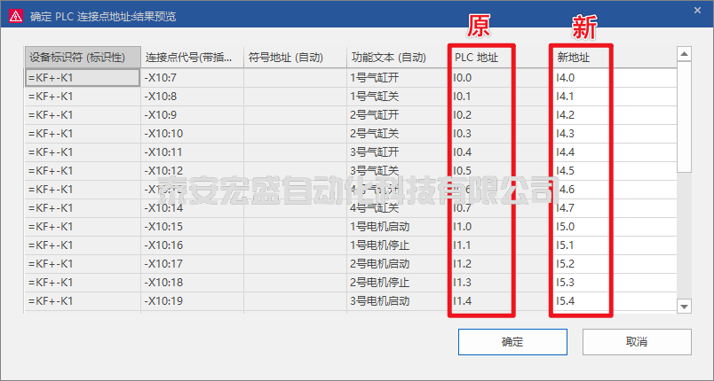 在“重選確定PLC連接點(diǎn)地址”界面下方勾選結(jié)果預(yù)覽,然后點(diǎn)擊確定??稍诰幹魄斑M(jìn)行結(jié)果的展示,如下圖所示。