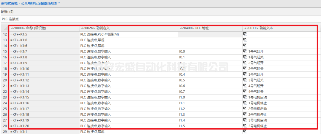 然后打開(kāi)規(guī)劃好的有PLC地址與功能文本的表格進(jìn)行復(fù)制,粘貼到EPLAN項(xiàng)目中表格式編輯對(duì)應(yīng)的配置列中,即可完成IO地址與功能文本的批量導(dǎo)入,如下圖所示。