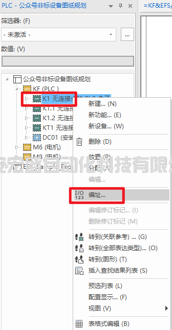 1. 負(fù)責(zé)研發(fā)的李工在對(duì)PLC點(diǎn)位地址以及屬性規(guī)劃完成后,手動(dòng)將PLC 的K1、K1.1、K1.2三個(gè)模塊的IO點(diǎn)地址信息以及功能文本輸入到EPLAN項(xiàng)目中去。