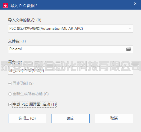 2) 導(dǎo)入:文件->導(dǎo)入->項(xiàng)目數(shù)據(jù)->PLC數(shù)據(jù),選擇相應(yīng)的格式,以及中間文件,同時(shí)勾選生成PLC原理圖。指定好頁(yè)面后即可自動(dòng)生成總覽圖,如下圖所示。