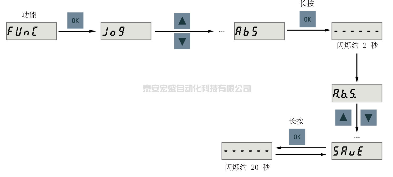 可通過 BOP 功能菜單 "ABS"設(shè)置絕對值編碼器的當(dāng)前位置至零位。校準(zhǔn)位置值在參數(shù) p2599 中設(shè)置。設(shè)置零位后必須保存參數(shù)。