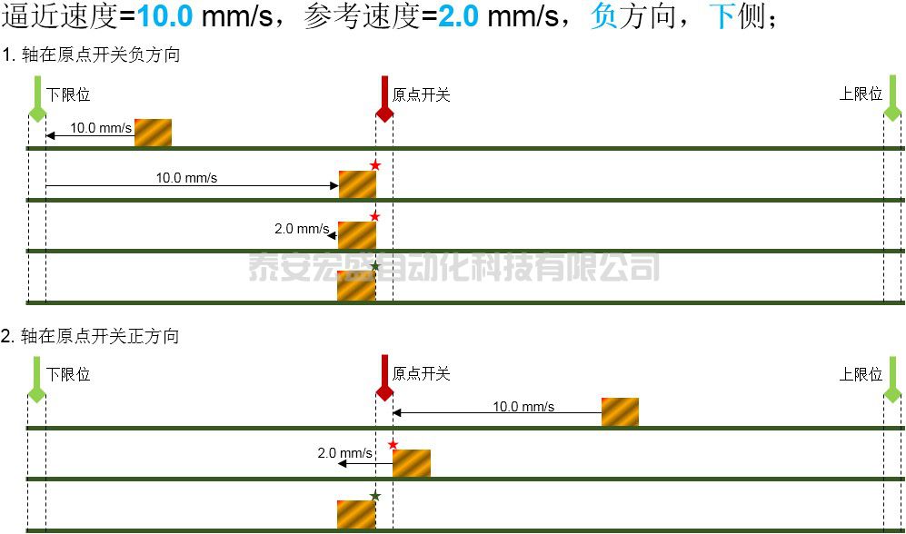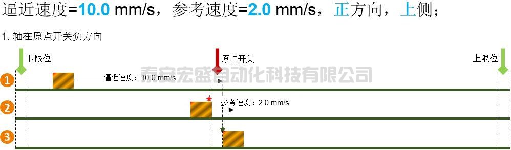 無論用戶設(shè)置尋找原點(diǎn)的起始方向?yàn)檎较蜻€是負(fù)方向,軸最終停止的位置取決于 “上側(cè)”或“下側(cè)”。