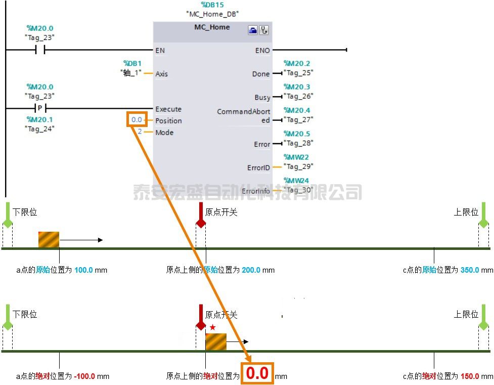 ④參考點(diǎn)位置: 該值是MC_Home指令中“Position”管腳的數(shù)值。