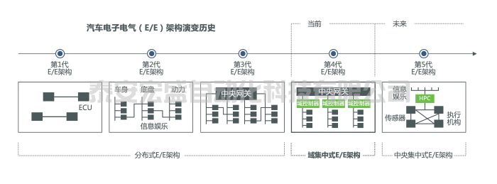 簡單來說,傳統(tǒng)的汽車E/E架構(gòu)往往是采用以ECU為核心的分布式架構(gòu),即傳感器、ECU和執(zhí)行器一一對應,以保證各個系統(tǒng)的獨立性和抗干擾性。智能網(wǎng)聯(lián)、自動駕駛等技術給整車開發(fā)帶來的巨大考驗是爆炸式的數(shù)據(jù)處理需求和更高的運算速度。傳統(tǒng)的分布式E/E架構(gòu),無論是運算能力和數(shù)據(jù)處理能力,還是車載網(wǎng)絡傳輸效率等都無法滿足自動駕駛和智能網(wǎng)聯(lián)技術的要求。因此,汽車E/E架構(gòu)開始由傳統(tǒng)的分布式逐步轉(zhuǎn)向以云計算為基礎的中央集中式架構(gòu)。下圖是博世給出的汽車E/E架構(gòu)演進路線圖。