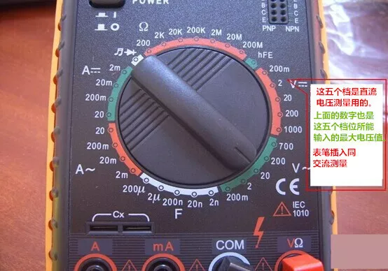 5、禁止在測量高電壓(220V以上)或大電流(0.5A以上)時換量程,以防止產(chǎn)生電弧,燒毀開關(guān)觸點(diǎn)。
