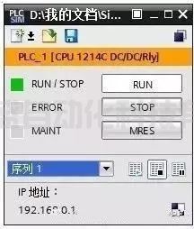 下載成功后,PLCSIM的CPU自動(dòng)切換到RUN模式。