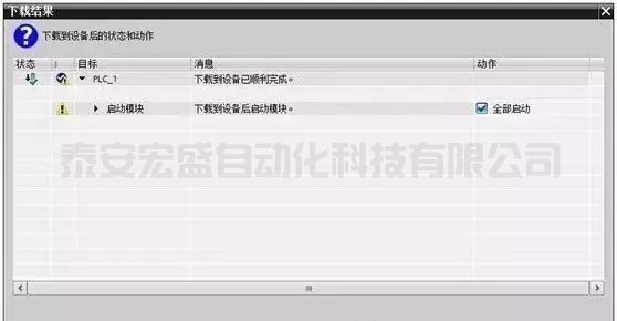 單擊“下載”按鈕,出現(xiàn)“下載預(yù)覽”對(duì)話框,勾選復(fù)選框“全部覆蓋”,編譯成功后,單擊“下載”按鈕,將程序下載到PLC。
