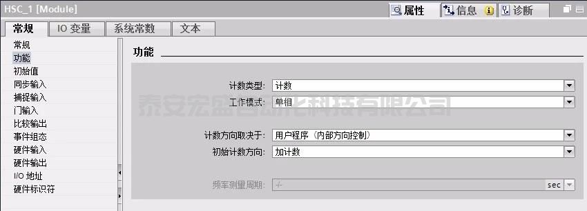 2在設備視圖>HSC_1>屬性>功能,定義計數(shù)類型為計數(shù)。