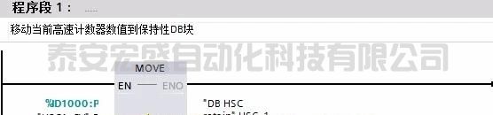 插入 Cyclic interrupt (循環(huán)中斷)OB201,設置中斷時間為 10 ms (也可以根據(jù)需要改變這個時間)。然后在 OB201 中將高速計數(shù)器的值 ID1000:P 送到 "DB HSC retain".HSC_1 中。這樣,高速計數(shù)器的值每10ms 送到 DB 中保存。
