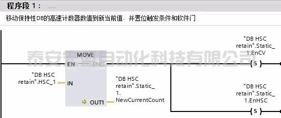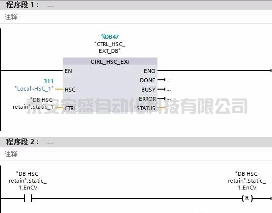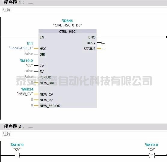4在 OB1 中編程 CTRL_HSC_EXT ,將保存的值設為當前值后,復位觸發(fā)位。
