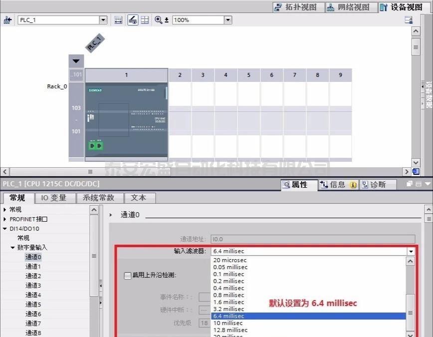 圖 12. 設置 S7-1200 CPU 輸入濾波器時間