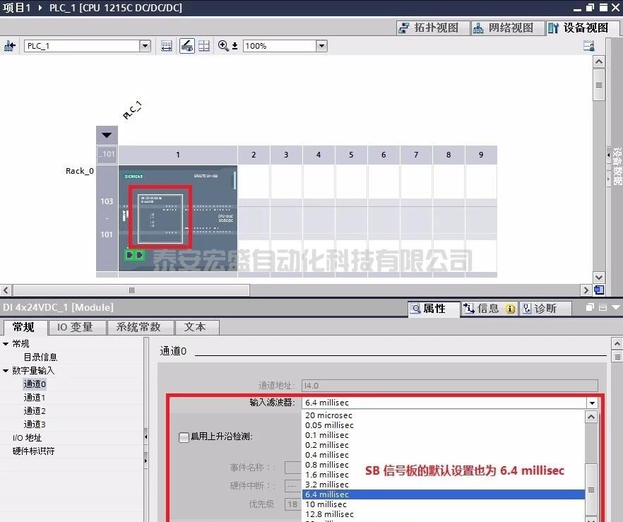 因此如果使用該默認值,且 S7-1200 CPU 或 SB 信號板接入的高速輸入脈沖超過 78Hz,則 S7-1200 CPU 或SB 信號板過濾掉該頻率的輸入脈沖。
