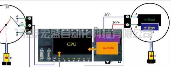 圖4是使用西門子S7-200 PLC讀取壓力變送器壓力值的接線圖例,這是一種最基本的使用方法,左邊是開關(guān)量的,右邊是模擬量的,不同的信號(hào)類型要接到PLC不同輸入端。