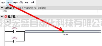 ----3.選中下面的常開觸點右側的雙箭頭,點擊收藏夾中的向上箭頭,連接能流: