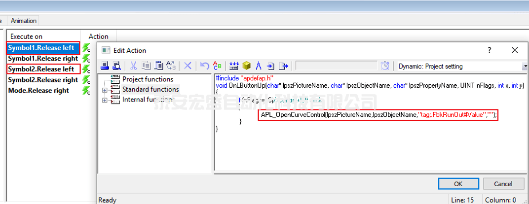 以 MonAnL 為例,APL 自帶功能塊圖標(biāo)之所以支持 AOTC 功能,是因為塊圖標(biāo)中“ Event→UserDefined1→Value1.Release left”存在腳本“APL_OpenCurveControl”,當(dāng)按住 Ctrl 鍵的同時點擊塊圖標(biāo)中對應(yīng)模擬量值時,會執(zhí)行以上腳本函數(shù)。