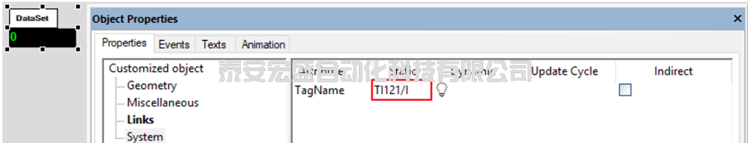 我們以最簡單的 I/O 域創(chuàng)建一個自定義對象來測試。在2.1章節(jié),MonAnL-APL_OpenCurveControl 的 lpszUnit 參數(shù)賦值使用了 tag,而 MotL 則在 lpszValue 中使用了 tag,所以 tag 為對應(yīng)的塊圖標(biāo)屬性中的 TagName。