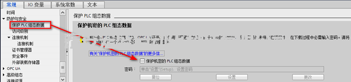 “保護(hù)機(jī)密的 PLC 組態(tài)數(shù)據(jù)”功能可通過密碼保護(hù)項(xiàng)目中的組態(tài)數(shù)據(jù),例如,證書,密鑰以及其它需保護(hù)的數(shù)據(jù),如圖13所示。