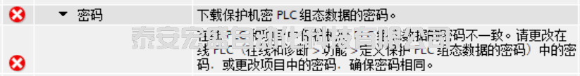 圖15.在線 PLC 和項(xiàng)目中密碼不一致