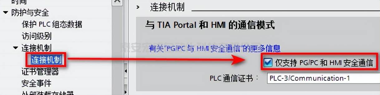 S7?1200 CPU V4.5 可實(shí)現(xiàn) PLC與 TIA 博途、SIMATIC Automation Tool 和 HMI 之間的安全通信。此實(shí)現(xiàn)基于標(biāo)準(zhǔn) TLS 1.3 (Transport Layer Security) 協(xié)議并支持用戶創(chuàng)建證書,如圖 17 所示。如果需要與不支持安全通信的設(shè)備進(jìn)行通信,需取消選擇 “僅支持安全 PG/PC 和 HMI 通信” 。