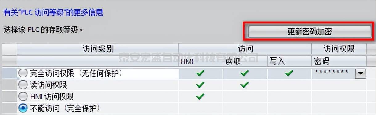 S7-1200 CPU V4.5 改進(jìn)了訪問級(jí)別密碼的存儲(chǔ)格式。將 S7-1200 CPU 升級(jí)為 V4.5 時(shí),“更新密碼加密” 按鈕可升級(jí)現(xiàn)有訪問級(jí)別密碼的存儲(chǔ)格式,如圖 19 所示。