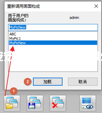 前面介紹的兩個(gè)功能雖然方便,但是用戶切換時(shí)會(huì)刪除之前的畫(huà)面存儲(chǔ)器和畫(huà)面堆棧難以滿足一些特殊場(chǎng)合需要。而且有些現(xiàn)場(chǎng)可能會(huì)在過(guò)程畫(huà)面的基礎(chǔ)上打開(kāi)若干個(gè)畫(huà)面窗口或面板,希望可以保存當(dāng)前的畫(huà)面構(gòu)成。按鈕區(qū)的另外三個(gè)按鈕這是為這種需求而生,可以將當(dāng)前的畫(huà)面構(gòu)成保存,后續(xù)調(diào)用。而且支持保存多個(gè)畫(huà)面構(gòu)成,用戶切換時(shí)不會(huì)丟失(但是只針對(duì)保存畫(huà)面構(gòu)成的用戶生效,即創(chuàng)建者登陸后方可查看)。