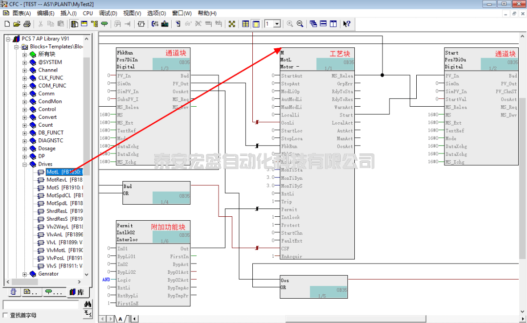 直接在CFC編輯器中調(diào)用APL庫(kù)功能塊來(lái)搭建自己的控制回路。如下圖所示: