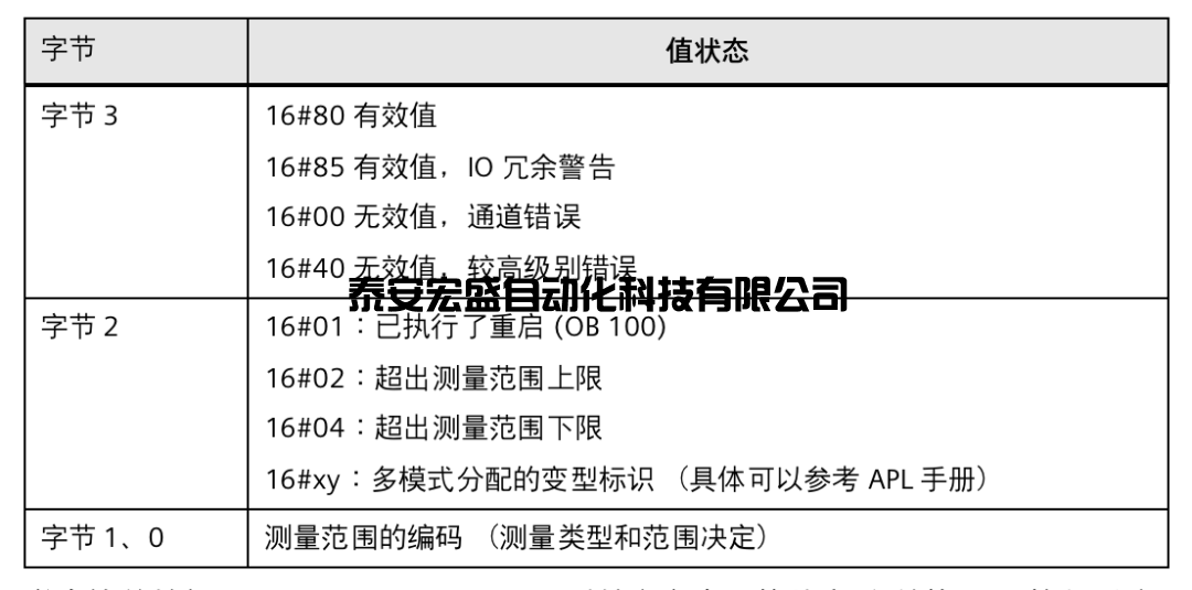 舉個(gè)簡(jiǎn)單的例子Mode= 16#80010203時(shí)的含義為:值狀態(tài)“有效值”且已執(zhí)行重啟,測(cè)量類(lèi)型為電流信號(hào),測(cè)量范圍為 4 mA 至 20mA。