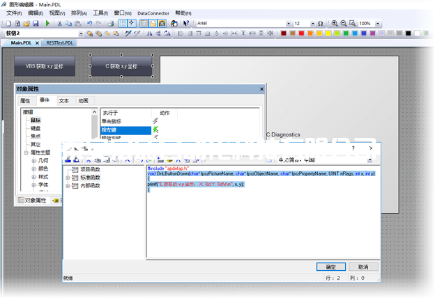 在按鈕“C 獲取 x,y 坐標”的“按左鍵”事件中編寫腳本