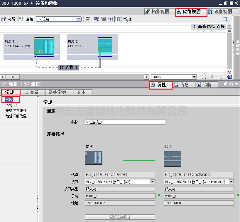 (4)在“網(wǎng)絡(luò)視圖”中,鼠標選中剛剛生成的"S7_連接_1",在屬性的常規(guī)選項卡中的"常規(guī)"欄,可查看創(chuàng)建的連接名稱和連接路徑,如圖 10 所示。