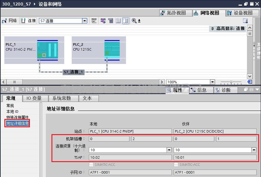 (7)在屬性的常規(guī)選項卡中的"地址詳細信息"欄,可查看連接的 TSAP 號,如圖 13 所示。