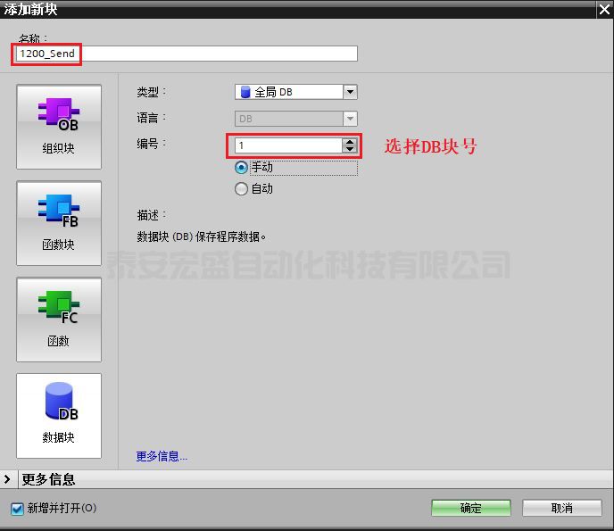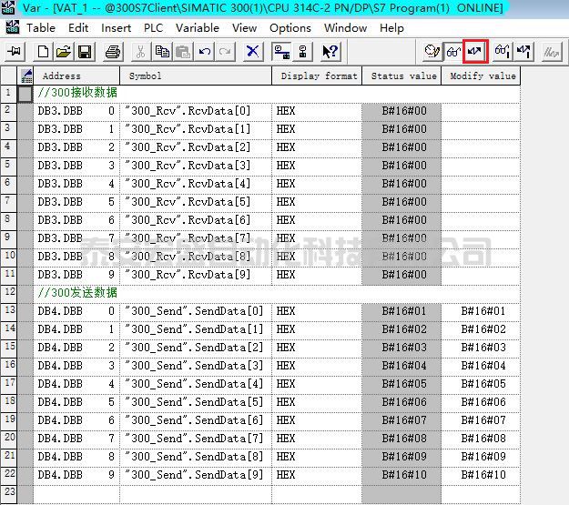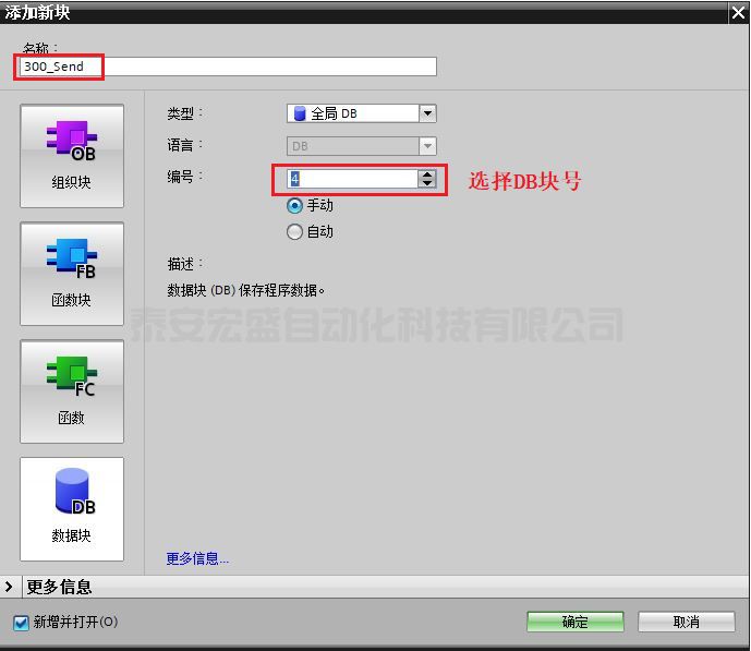 1.3 創(chuàng)建并定義 S7-300 的發(fā)送數(shù)據(jù)區(qū) DB 塊。