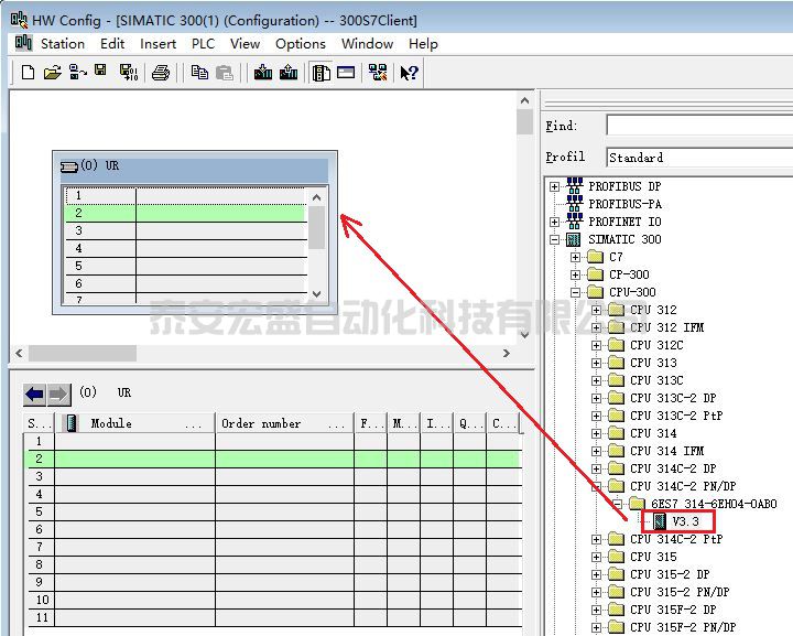 (6) 插入S7-300 CPU,與實際CPU 一致:6ES7 314-6EH04-0AB0 V3.3,如圖 59 所示。