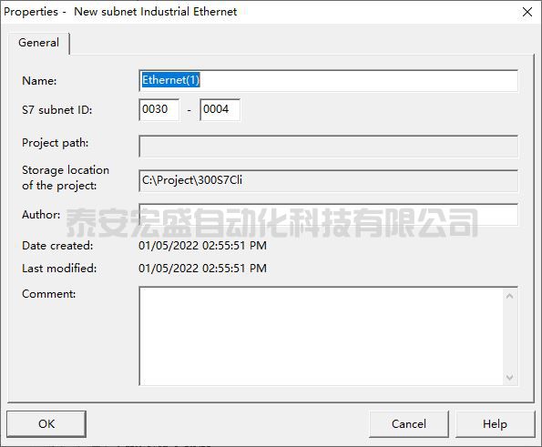 (9) “ New subnet Industrial Ethernet”對話框下Name: Ethernet(1),如圖 62 所示。