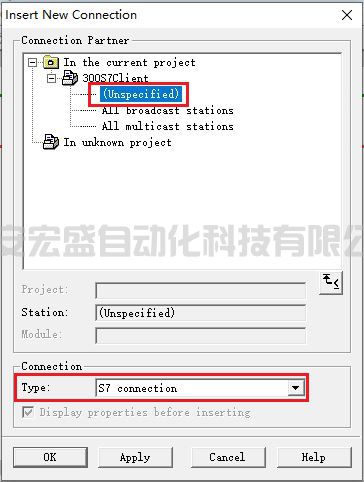 (3)通訊伙伴選擇非指定(Unspecified),通訊類型選擇 S7 connection,如圖 69 所示。