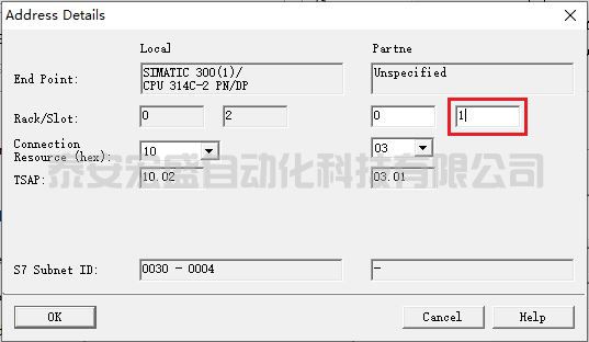 (5)在地址詳細信息對話框中填寫通信伙伴 CPU 的機架號和槽號,槽號設(shè)置為 0 或 1。點擊“OK”按鈕,如圖 71 所示。