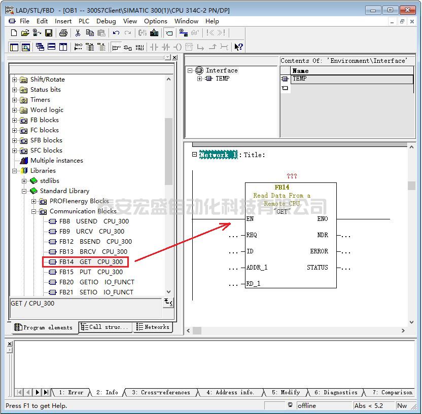 如果是 S7-400 PN/CP,需要插入 SFB 14 GET 與 SFB 15 PUT,位置如圖 80 所示。