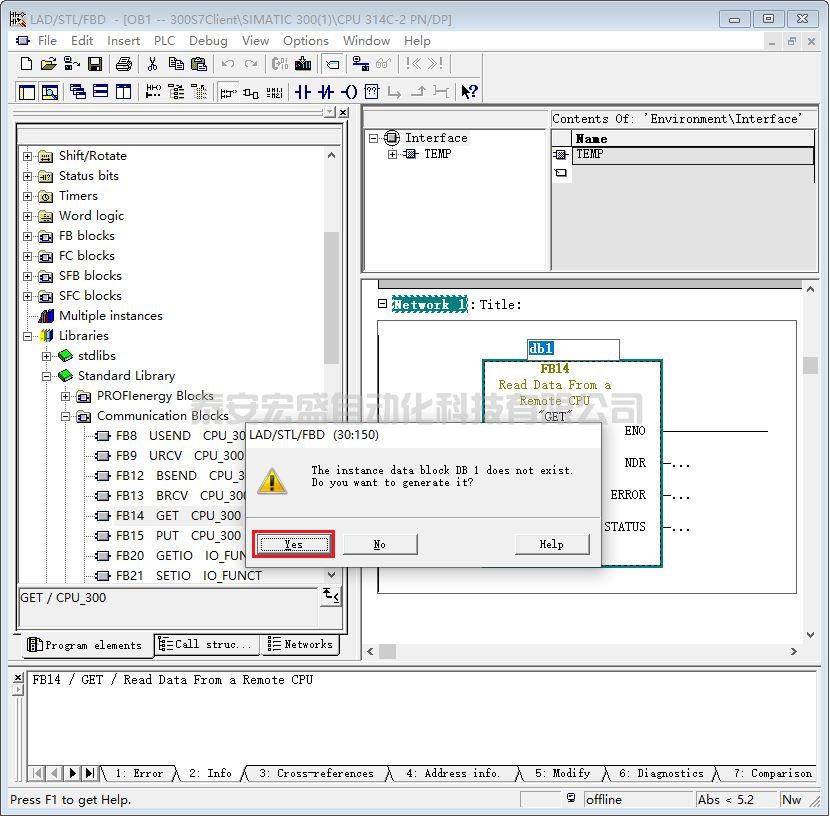 (1)GET 功能塊使用背景數(shù)據(jù)塊 DB1,管腳說明如下: