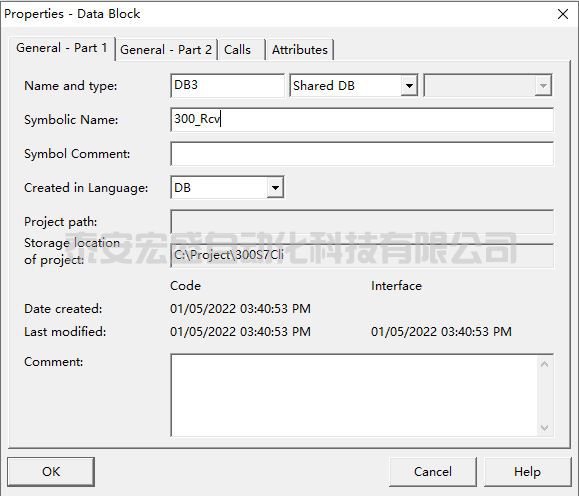 1.2 創(chuàng)建并定義 S7-300 的接收數(shù)據(jù)區(qū) DB 塊。