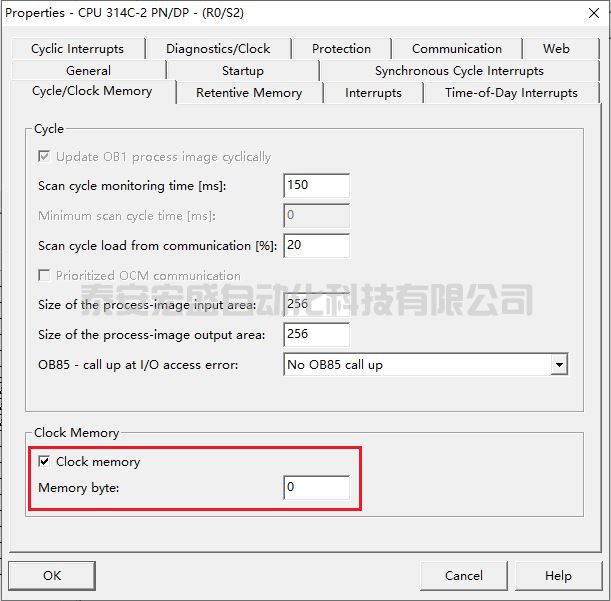 (1)在 S7-300 項目的 Hardware 中,右鍵點擊 CPU,選擇 Object Properties>Cycle/Clock Memory,勾選“Clock memory”,輸入Memory byte,如圖 89 所示。