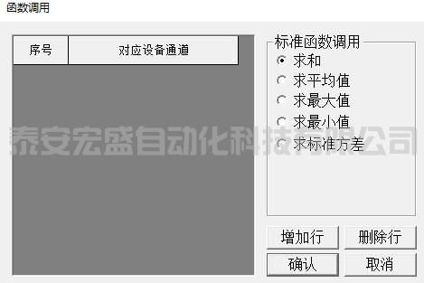 如下圖所示,函數(shù)調(diào)用用來(lái)對(duì)設(shè)定的多個(gè)通道值進(jìn)行統(tǒng)計(jì)計(jì)算,包括:求和、求平均值、求最大值、求最小值、求標(biāo)準(zhǔn)方差。