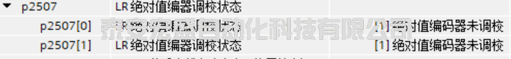 這里需要注意,P2507屬于編碼器數(shù)據(jù)組,其下標(biāo)[0]和[1]分別代表編碼器1數(shù)據(jù)組和編碼器2數(shù)據(jù)組,見下圖,這時(shí)就需要查看是對(duì)哪個(gè)編碼器執(zhí)行絕對(duì)值編碼器的校準(zhǔn)操作了,或者說,你的絕對(duì)值編碼器配置在編碼器1里,就執(zhí)行參數(shù)P2507[0],如果你的絕對(duì)值編碼器配置在編碼器2里,就執(zhí)行參數(shù)P2507[1]。