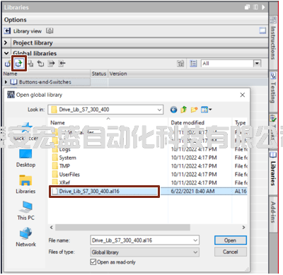 3. 在項目中導入S7-300/400的Drive_Lib庫。