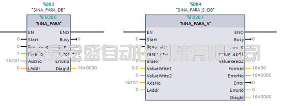- SINA_PARA(FB286) 、SINA_PARA_S(FB287):通過非循環(huán)通信寫入和讀取多個或單個驅(qū)動參數(shù)。