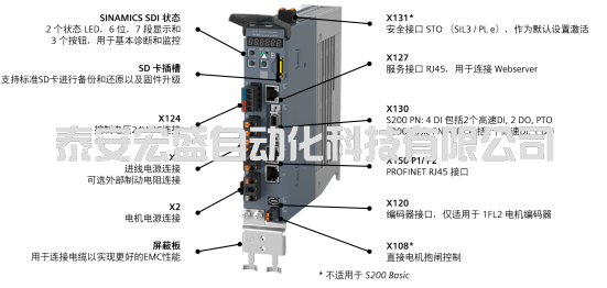 SINAMICS S200 PN硬件及接口如圖2-2所示,它具有易于安裝的接線方式。