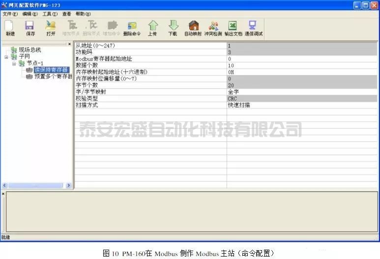 在下層網(wǎng)絡(luò)中(建立西門子S7-300PLC和現(xiàn)場智能儀表的連接通信), Modbus轉(zhuǎn) Profibus- DP網(wǎng)關(guān)PM-160在 Modbus例做 Modbus主站,在 Profibus-DP側(cè)做從站,建立 Modbus從站(現(xiàn)場各種智能儀表、電機(jī)、智能開關(guān)、變頻器、傳感器等)與 Profibus-DP主站西門子S7-300PLC的通信。